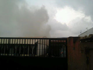The fire which started in the afternoon burnt down parts of the roof of the building.